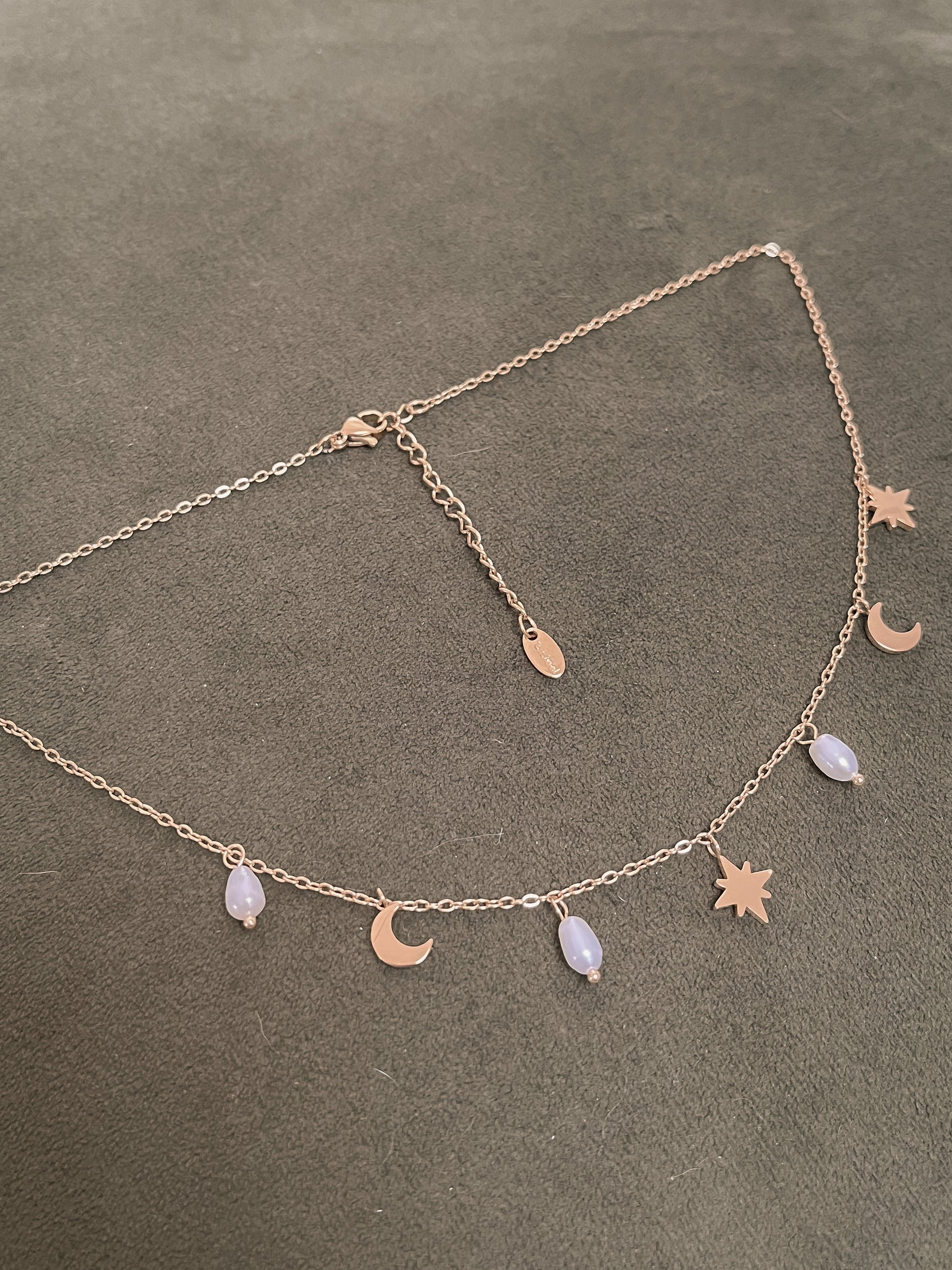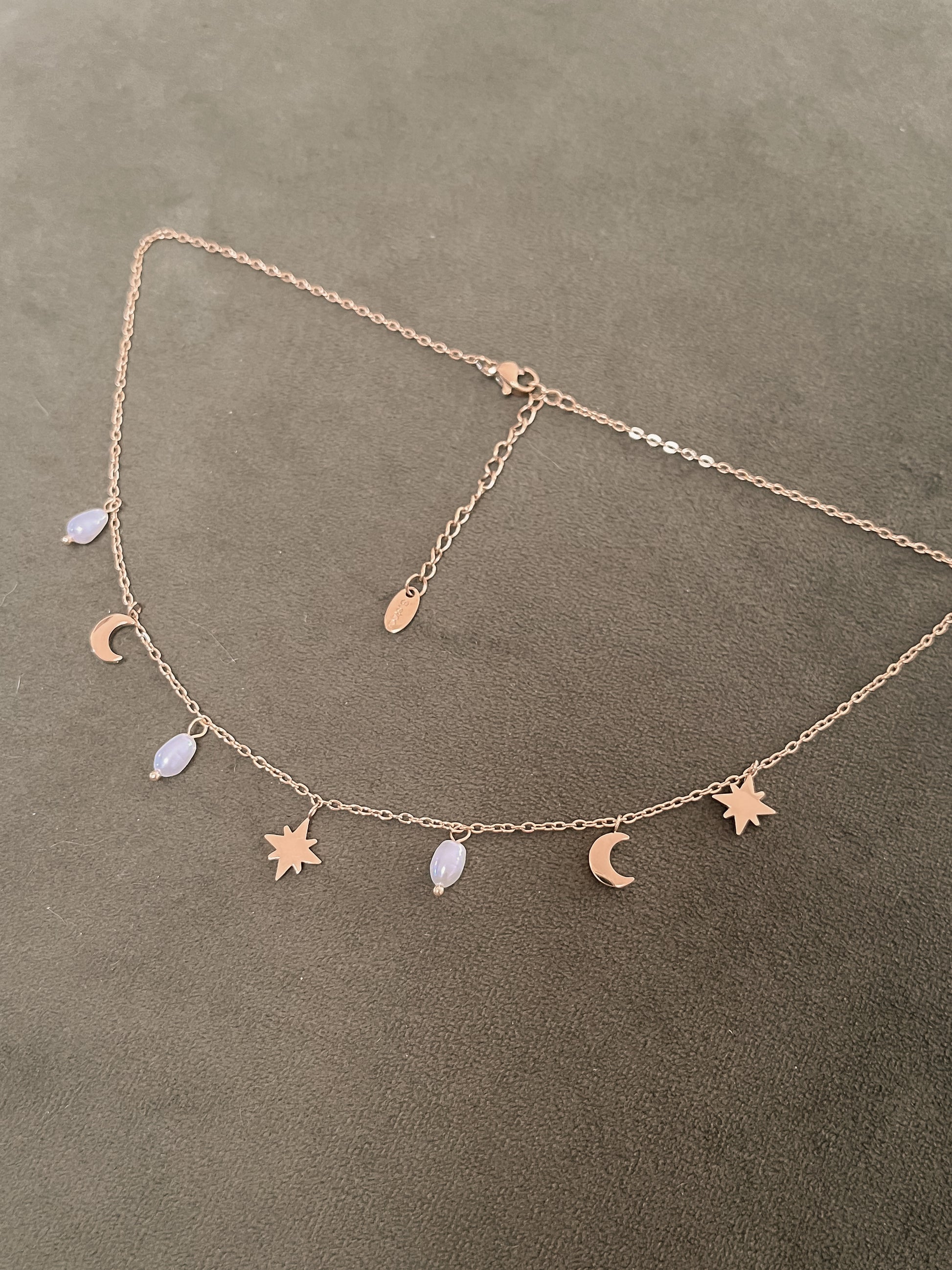 The Vale Necklace is the perfectly curated charm necklace without the hard work. Featuring star and moon charms alongside freshwater pearls on an 18K gold-plated necklace, this mesmerising chain is both hypoallergenic and waterproof.